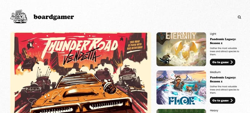 A vibrant hub for board game enthusiasts, the platform highlights featured games, podcast episodes, and live streams, offering diverse content. With bold colors and clear typography, it ensures easy navigation and an engaging, community-focused experience.