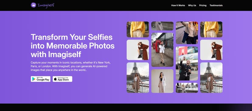 Imagiself transforms your selfies into memorable photos by placing you in iconic locations worldwide using AI-powered technology. Capture moments as if you were in New York, Paris, or London with just a few clicks.