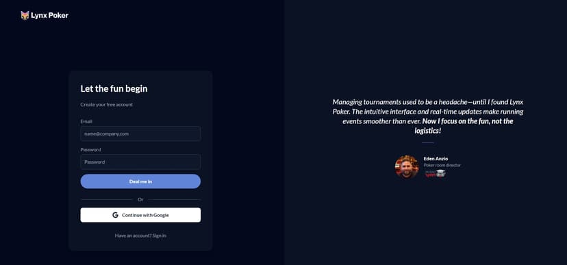 Lynx Poker simplifies tournament management with an intuitive interface and real-time updates, allowing users to focus on the fun rather than logistics. The platform offers a seamless experience for poker room directors and enthusiasts alike.